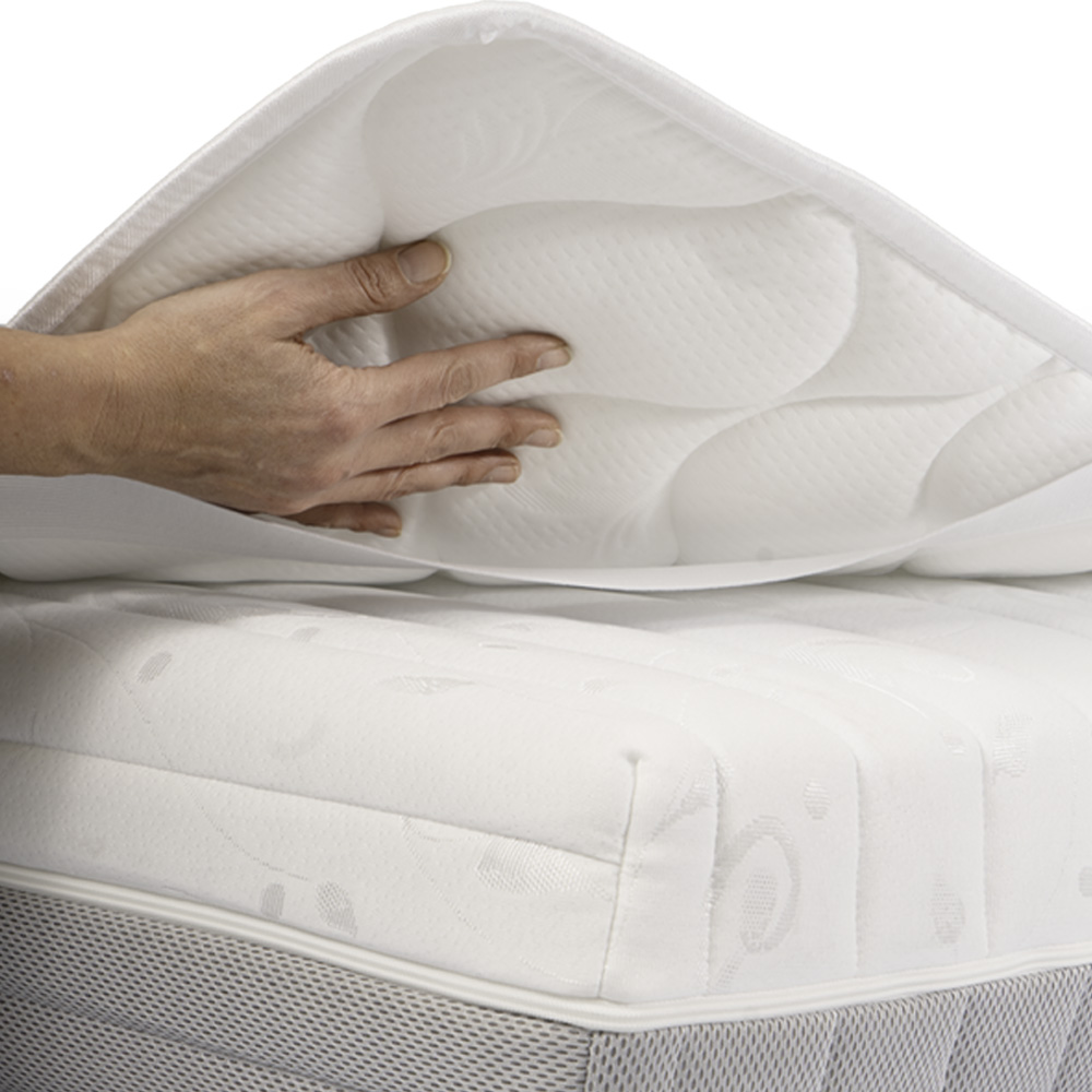 Topper realizzato co 1000 gr di imbottitura in fibra di ovatta per un effetto extra soffice.